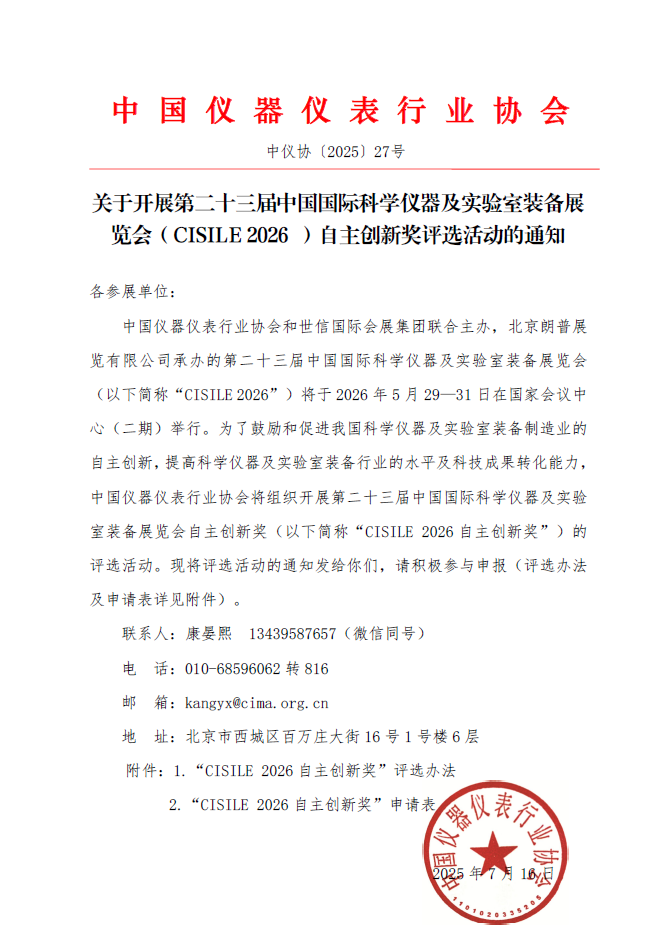 中國儀器儀表行業協會版權所有 | 京ICP備13023518號-1 | 京公網安備 110102003807地址:北京市西城區百萬莊大街16號1號樓6層 | 郵編:100037 | 電話:010-68596456 / 68596458 戰略合作伙伴、技術支持:中國機械工業聯合會機經網(MEI)