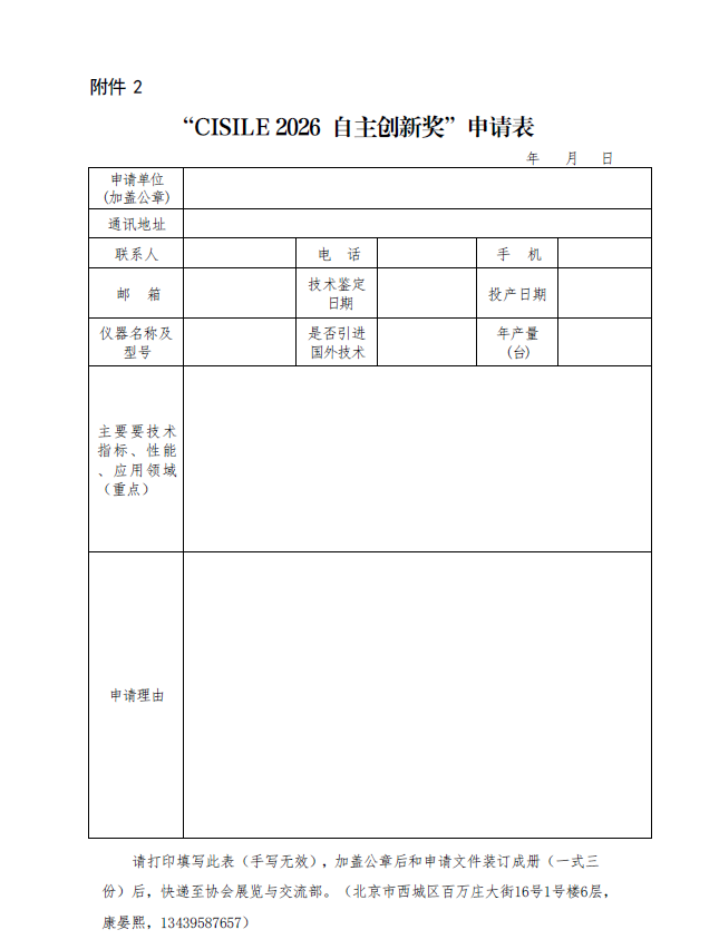 點擊“申請表”下載CISILE 2026 自主創新獎申請表